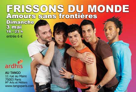 Dimanche au TANGO, nous donnons rendez-vous à tous et toutes, pour un thé dansant multicolore. Une occasion-symbole de mélanger toutes les ethnies, pour apporter un soutien à l'association ARDHIS qui tout au long de l'année, accueille et aide les étrangers homos et trans.